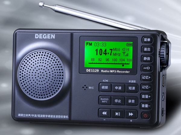 功能介绍FM(调频):87.0-108.0MHz或64.0-108.0MHz(校园广播)MW(中波):522-1710KHzSW(短波):2.30-23.00MHz预存248个电台频率收音信号强度指示高频立体声五种调谐方式:(编码旋钮/手动/自动/记忆/ATS)大尺寸LED背光点阵屏,全面支持中文显示播放功能:MP3与WMA解码多种循环播放模式多种音效模式变速播放功能A-B复读录音功能:MIC录音、录制收音机MP3/WAV录音格式选择可作为有源音箱电子书功能:TXT文档阅读智能定时开关机闹钟功能睡眠关机(05-90分钟)支持软件升级支持多种语言内置4G大容量闪存,支持MICRO SD卡播放按键锁定开关电子音量控制(31级)内置顶级超级重低音振动膜及宽频音响型扬声器MINI-USB接口,USB2.0高速传输智能充电,可连接电脑充电电池电量指示,电量不足自动关机可拆卸电池,更换电池更方便整机尺寸:130*78*30MM重量(含锂电池):约145G附送配件:USB连接线、锂电池、操作指南